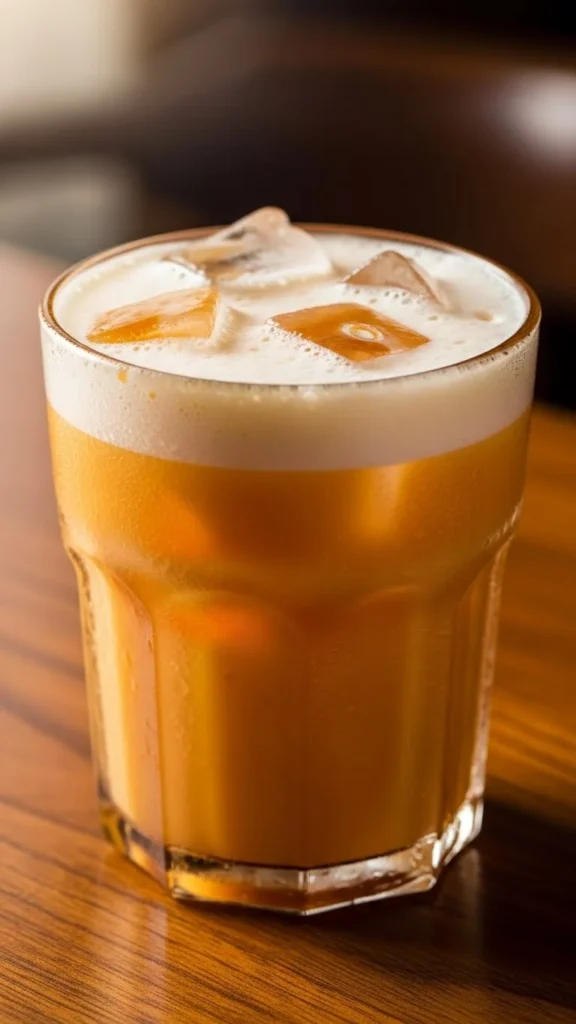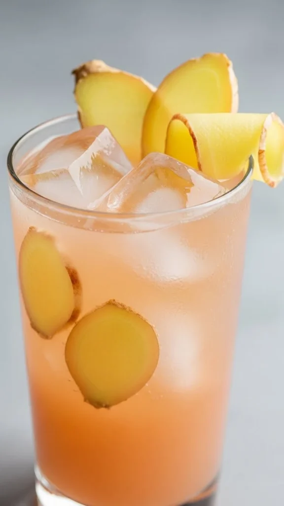 Add peach slices or candied ginger. Serve in tall glasses. Perfect for evening gatherings.