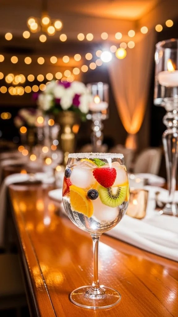 Serve in champagne-style glasses. Add mixed fruit for color. Ideal for midnight cheers.