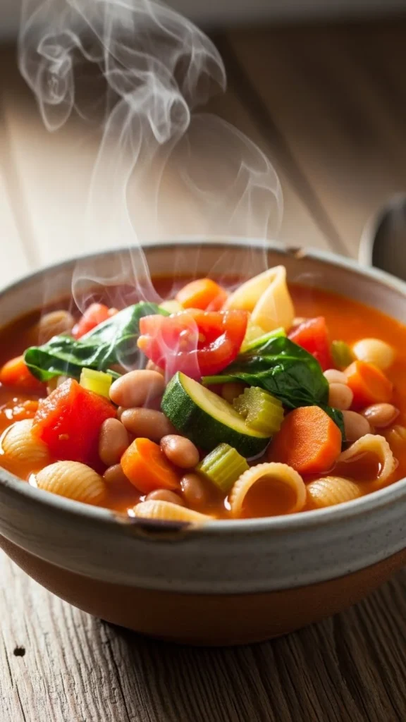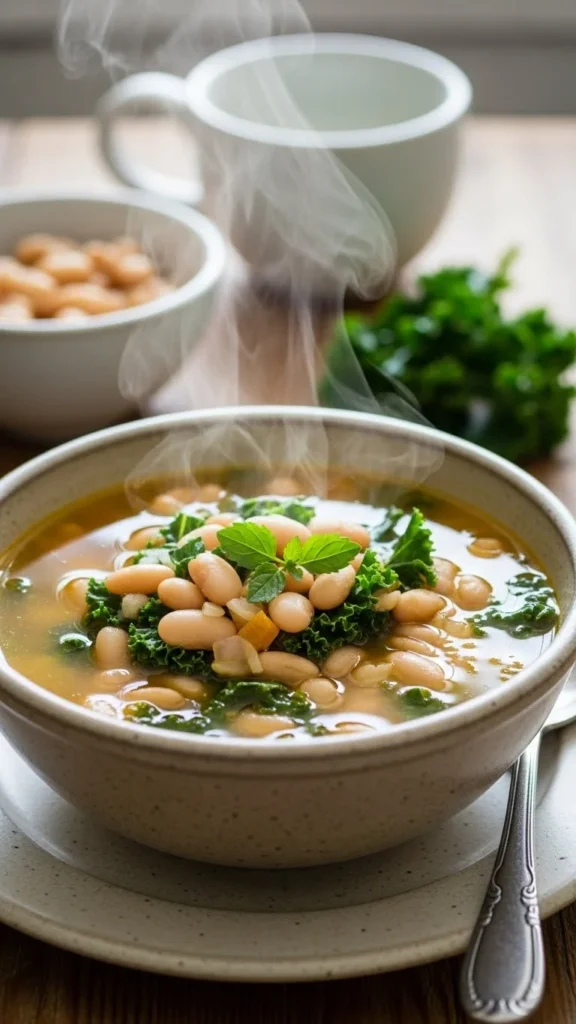 This soup feels rustic and comforting, with creamy beans and leafy greens simmered together in a rich broth. It’s filling and calm, perfect for winter evenings.