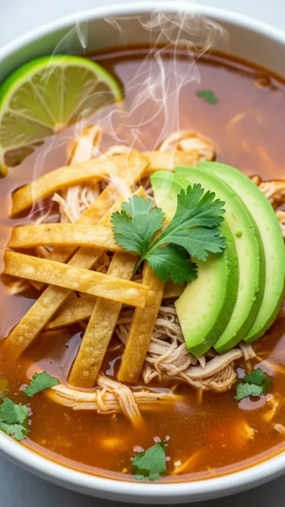 This soup is comforting and bold, with tender chicken and warming spices balanced by crisp toppings. It’s filling and perfect for relaxed winter dinners.