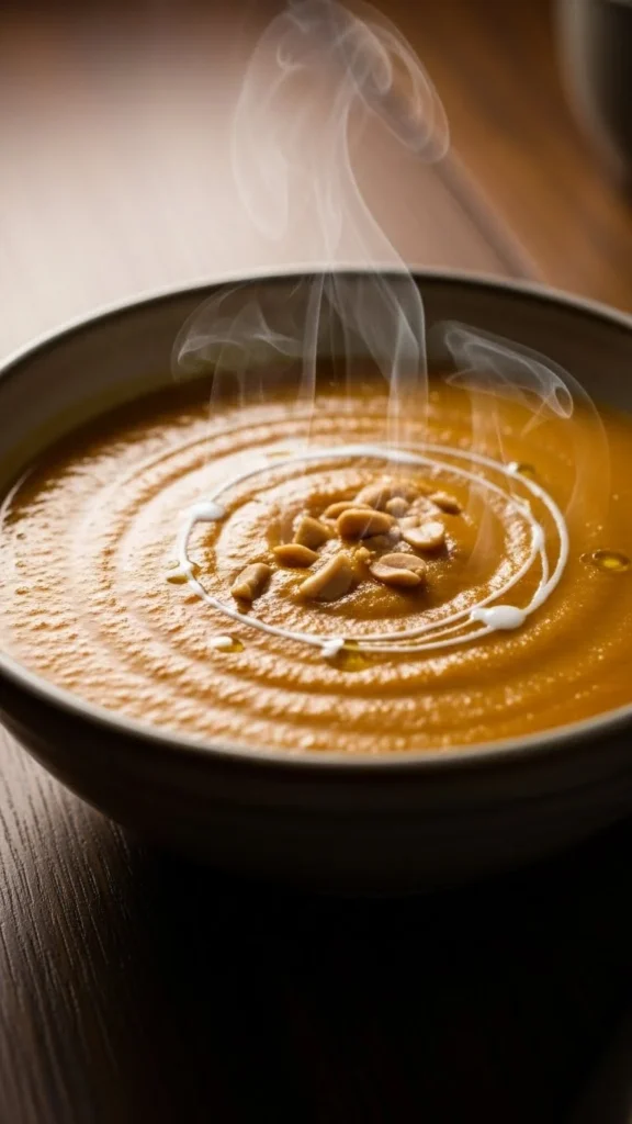 This soup is creamy, gently sweet, and deeply comforting, with sweet potatoes blended into a smooth base and peanut butter adding richness. It feels warm and filling on cold days.