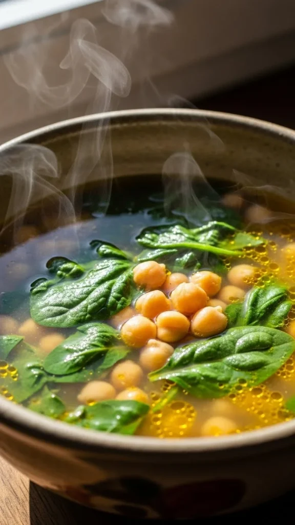 This soup is light yet filling, with chickpeas and spinach simmered together into a comforting bowl. It’s simple, calm, and great for everyday meals.