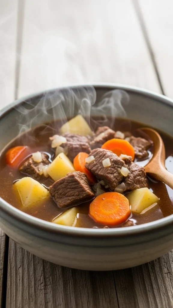 This soup is hearty and familiar, with tender beef and vegetables simmered together for a comforting, filling meal. It’s perfect for long winter days.