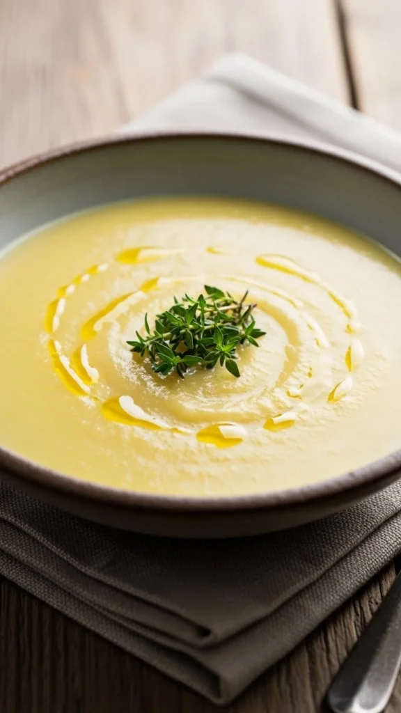 Top with chopped chives or thyme. Serve with toasted sourdough. A drizzle of olive oil adds richness. Best enjoyed hot in wide bowls. Great as a starter or light dinner.