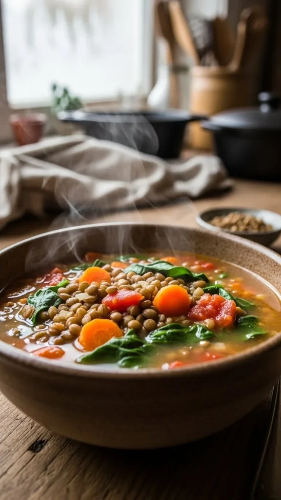 This lentil soup is filling, wholesome, and packed with vegetables that simmer together into a rich, comforting pot. It’s ideal for New Year routines focused on balance and warmth, offering plenty of flavor without feeling heavy.