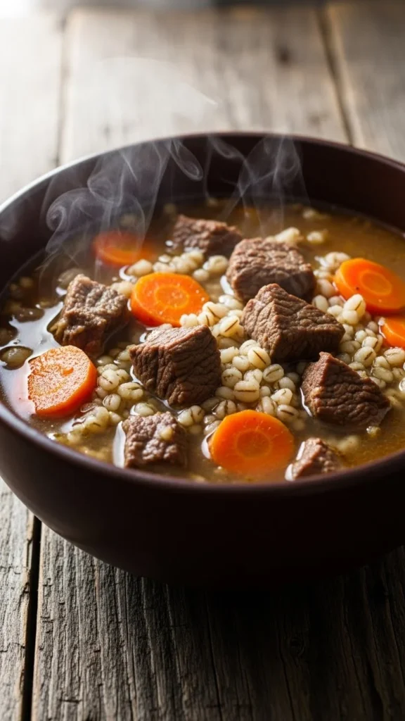 This soup cooks slowly into a rich, hearty meal that feels perfect for winter evenings. Tender beef and chewy barley make it filling and comforting, with flavors that deepen as it simmers. It’s a great choice when you want something warming and substantial.