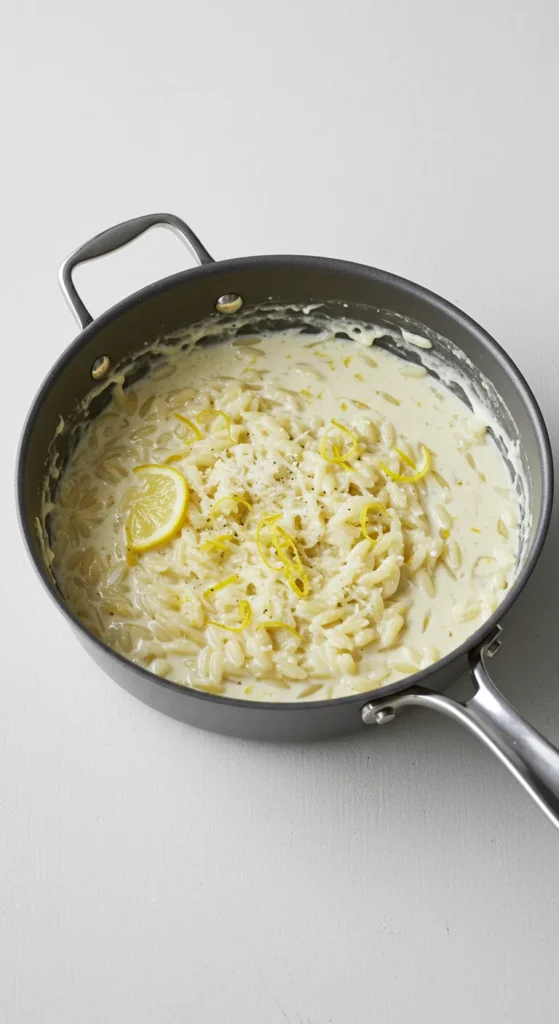 This lemon parmesan orzo feels fancy but is so easy. Sauté garlic, add orzo, broth, and lemon juice. Simmer 12 minutes, then stir in parmesan. Budget tip: Buy orzo and cheese in bulk. One pot keeps cleanup fast. A basic pan works fine—no fancy tools needed. Add spinach for color. Serves four and reheats nicely. Prep ingredients ahead to save time. It’s a bright, creamy meal with minimal dishes.