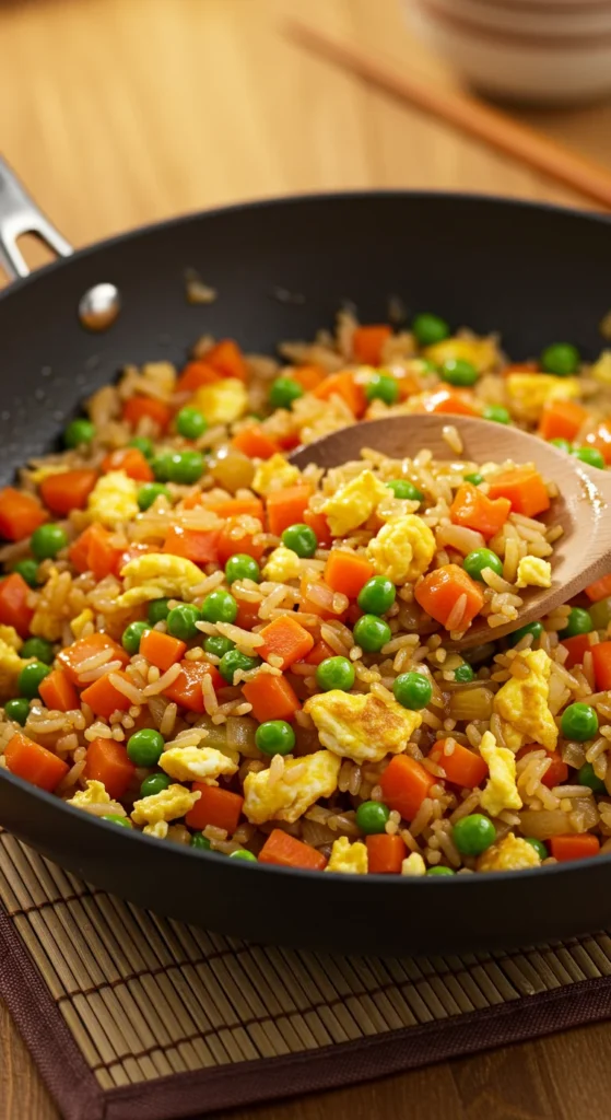 This veggie fried rice is a quick win. Sauté carrots, peas, and eggs, then add rice and soy sauce. Cook 10 minutes. Budget hack: Use day-old rice and frozen veggies. One wok means easy cleanup. No special tools needed—just a pan. Add green onions for flavor. Serves four and reheats well. Prep veggies ahead to save time. It’s a fast, tasty meal with just one dish to wash.