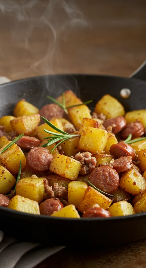 This sausage and potato hash is hearty and fast. Brown sausage and potatoes, add broth and rosemary. Cook 15 minutes. Budget tip: Use bulk sausage and cheap potatoes. One skillet means easy cleanup. No special tools needed—just a pan. Add onions for flavor. Serves five and reheats well. Chop potatoes ahead to save time. It’s a filling, savory meal that leaves just one dish to wash.