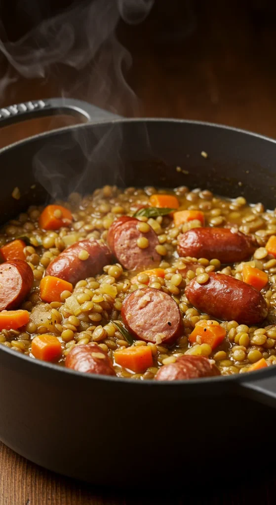 This sausage and lentil stew is pure comfort in one pot. Brown sausage, then add lentils, carrots, onions, and broth. Simmer for 25 minutes. The lentils soak up the smoky flavors. Save cash by buying bulk lentils and store-brand sausage. Use a single pot to keep cleanup easy. No need for a fancy Dutch oven—a basic pot works fine. Add spinach or kale for extra greens without effort. This dish serves six and freezes well for later. Chop veggies the night before to cut prep time. It’s filling, cheap, and perfect for cold nights. One pot means you’re not stuck scrubbing dishes after dinner.