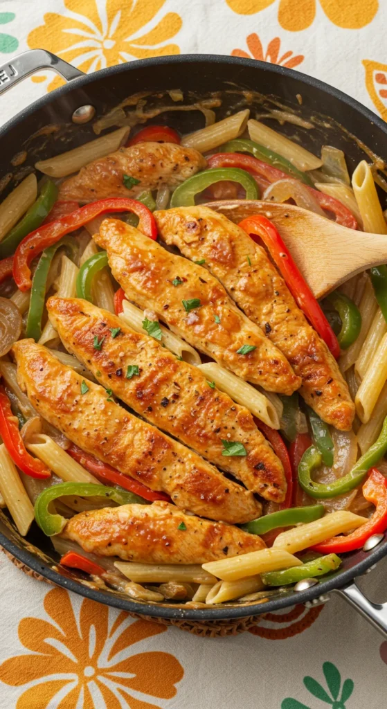 This chicken fajita pasta brings Tex-Mex to your table. Sauté chicken, bell peppers, and onions, then add pasta, broth, and spices. Simmer 15 minutes, then stir in cream. Budget hack: Use frozen peppers—they’re cheaper and pre-sliced. One pot keeps cleanup quick. A large skillet or pot works fine—no special tools needed. Add chili powder for spice orshe kitchen. A high-end camera captures the tender meat and bright vegetables.