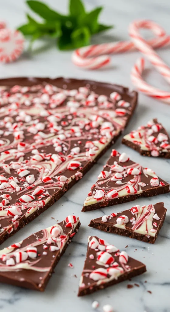 Present peppermint bark in a festive tin or on a holiday platter for a stunning display. Garnish with extra crushed candy canes for crunch or a drizzle of melted chocolate for elegance. Serve chilled for the best texture, alongside hot cocoa or coffee to complement the minty flavor. Perfect for gifting in cellophane bags tied with red ribbon.
