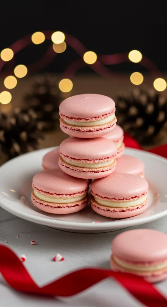 These elegant macarons feature crisp shells and a creamy peppermint filling, making them a sophisticated treat for holiday parties. Their delicate texture and festive flavor are sure to impress your guests.
