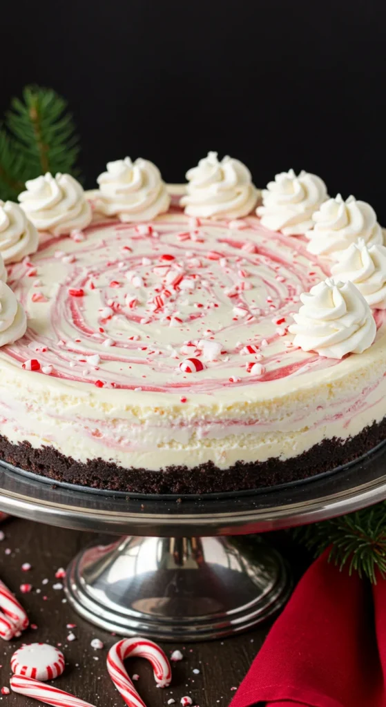 Slice and serve chilled on festive plates for a stunning presentation. Add a drizzle of chocolate sauce or a sprinkle of candy cane pieces for extra flair. Pair with a glass of sparkling wine or hot tea to balance the richness. This cheesecake is perfect for Christmas Eve dessert tables.