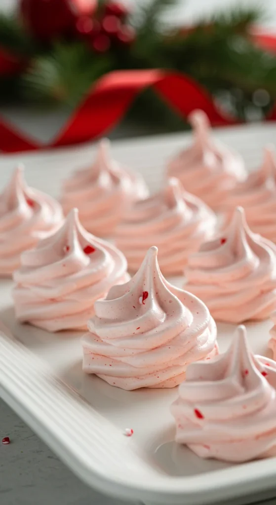 These light, airy meringues melt in your mouth with a subtle peppermint flavor, making them a perfect low-calorie treat for holiday gatherings. Their crisp texture and festive appearance add a touch of elegance to any dessert table, and they’re surprisingly simple to whip up.