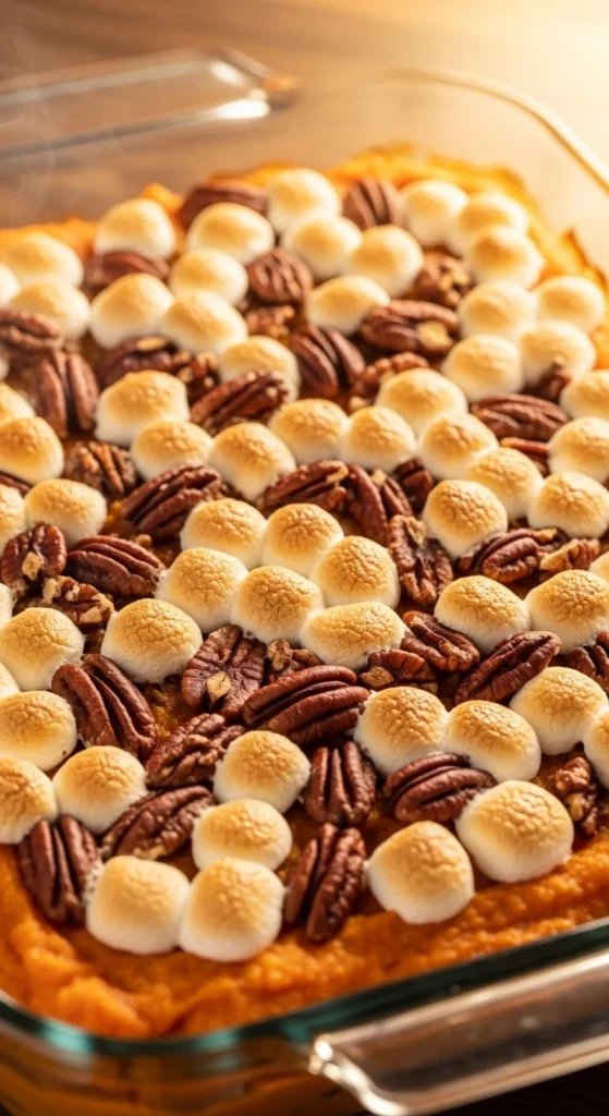 This casserole combines mashed sweet potatoes with a crunchy topping, creating layers of smooth and crisp that comfort on chilly days. The sweetness balances with nuts for a hearty side. It’s a staple at holiday tables but works year-round. The marshmallows add a fun, melty element. Prep it ahead for stress-free meals.