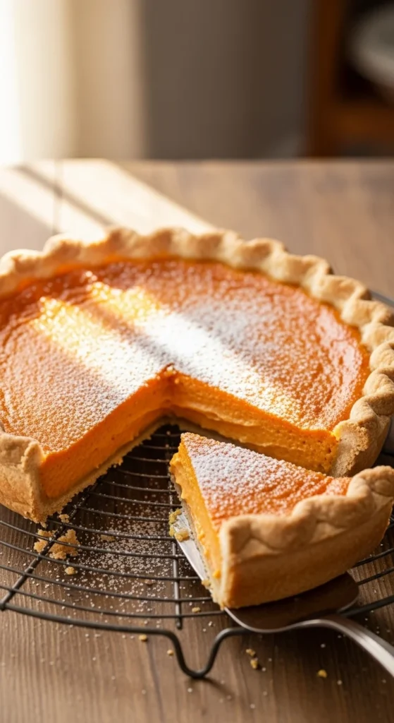 This pie captures the essence of sweet potatoes in a spiced filling encased in flaky crust, evoking homey desserts for gatherings. The custard-like center sets perfectly with eggs and milk. It’s less dense than pumpkin pie but equally satisfying. Bake it for that aromatic kitchen fill. A classic that’s always welcome.