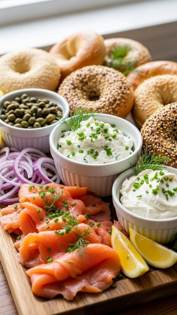 This board feels relaxed yet special and lets everyone build their own bite. Creamy, salty, and fresh flavors balance beautifully. It’s perfect for couples or small groups. Minimal cooking keeps things easy. The colors look great on the table.