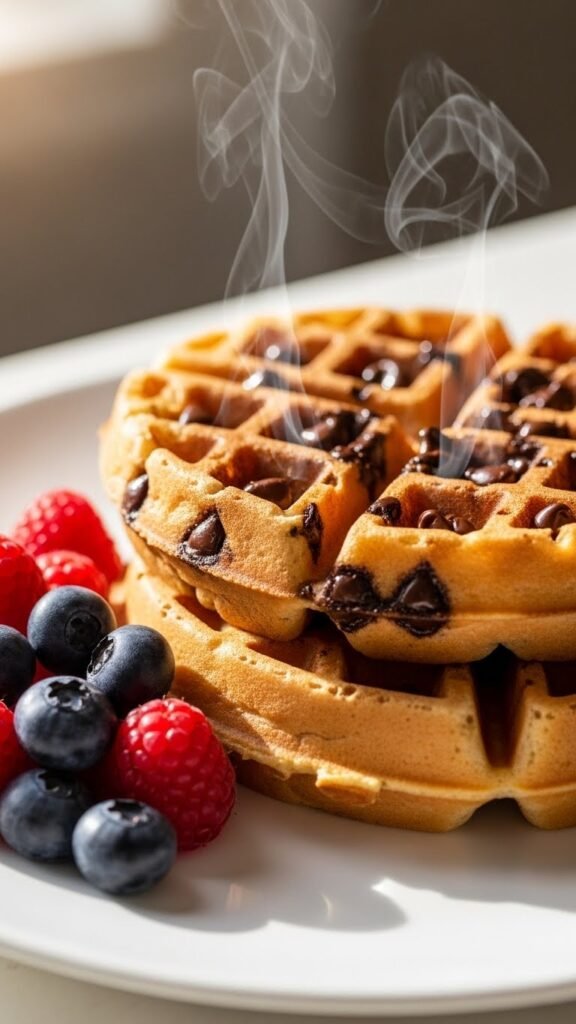 Ricotta makes these waffles tender and rich without feeling heavy. Chocolate chips melt into pockets of sweetness. The crisp edges contrast the soft center. They cook evenly in a waffle iron. A cozy favorite for sweet brunch lovers.