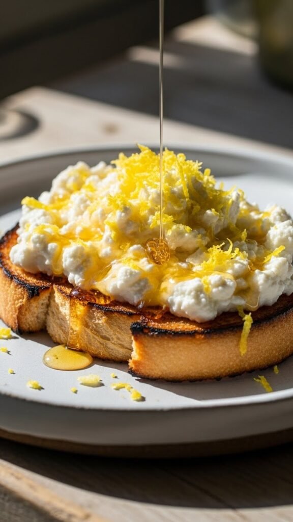 This toast is colorful and earthy. Beets give a soft sweetness. Creamy texture spreads easily. A fresh savory option. Looks striking on the table.