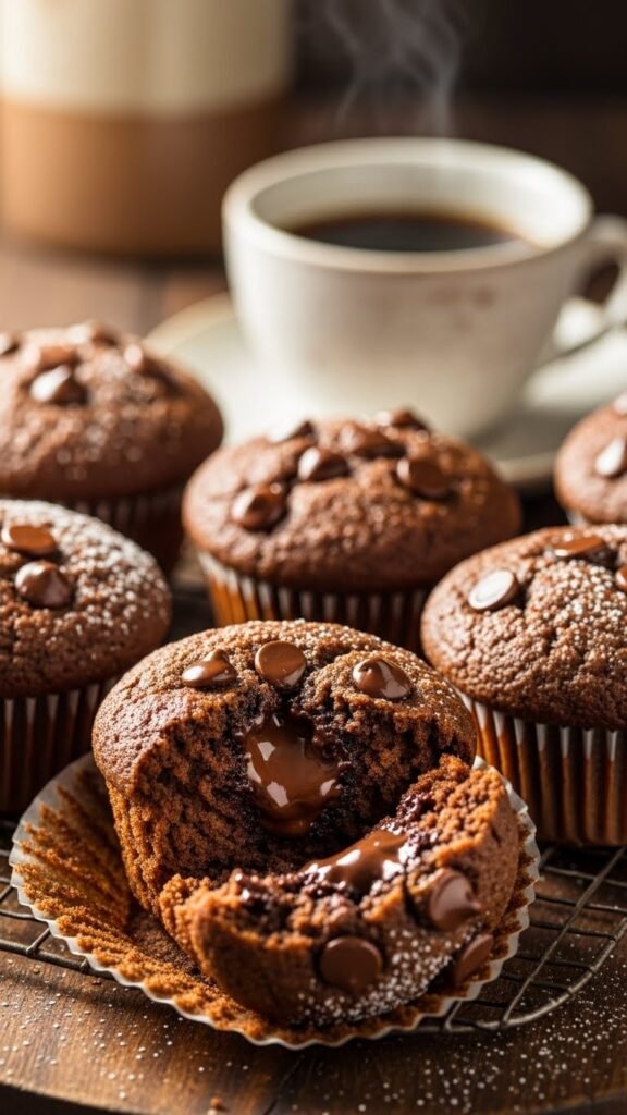 These muffins are rich with a coffee note. Chocolate stays soft. Great for coffee lovers. Easy to bake. Cozy addition.