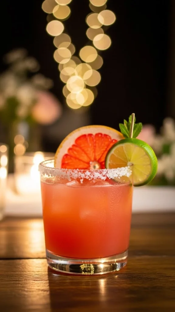 Garnish with grapefruit slice. Serve chilled. Light appetizers pair well. Enjoy immediately. Refreshing finish.