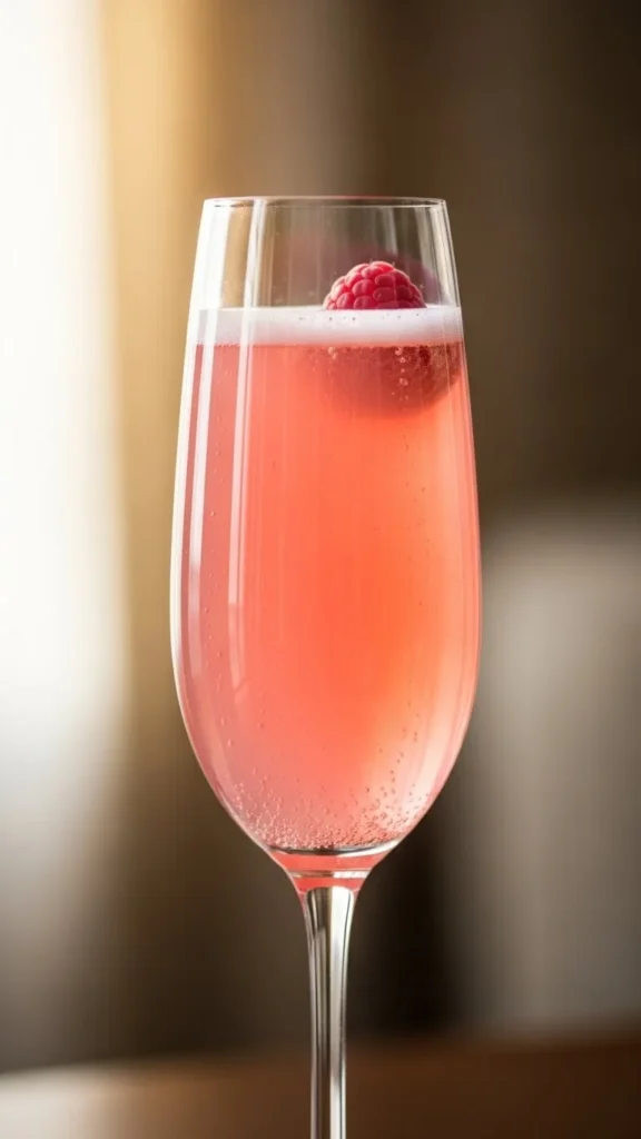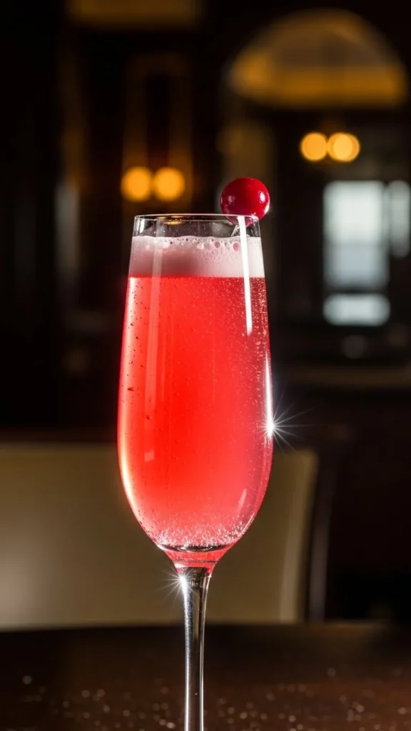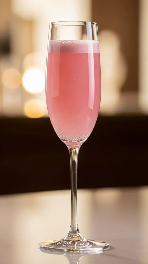 This drink is light and cheerful. Fruit juice adds color. Champagne keeps it lively. Perfect for brunch. Easy and elegant. A romantic classic.