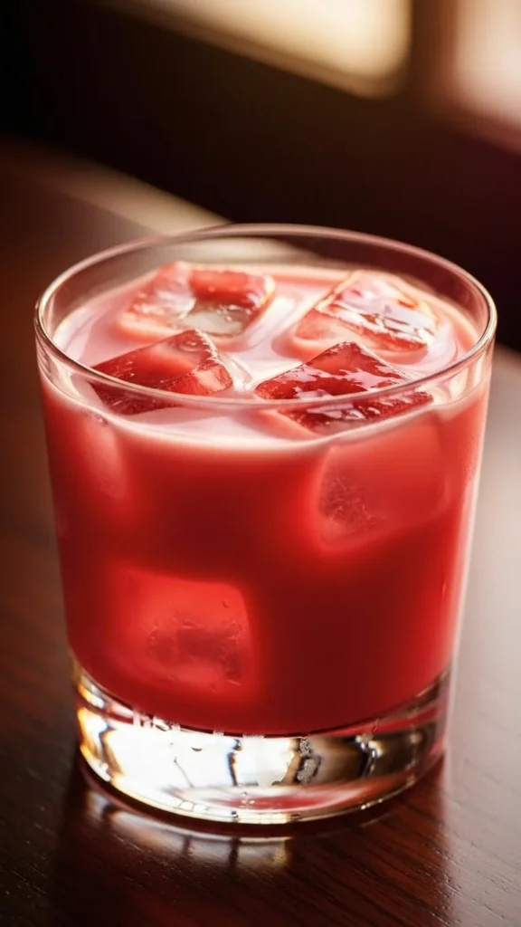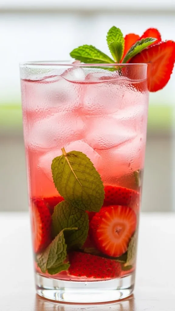 Garnish with a strawberry slice. Serve over ice. Use ripe berries for best flavor. Pair with soft desserts. Enjoy immediately.