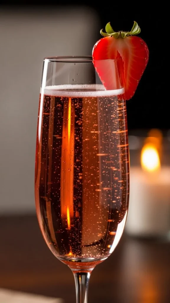 This drink brings together fresh fruit and bubbles for a celebratory feel. Sweet strawberries balance beautifully with crisp champagne. It’s refreshing, playful, and perfect for a toast. The light fizz keeps it easy to sip throughout the evening. Its bright color adds instant charm to any table. Ideal for starting the night on a joyful note.