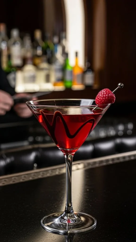 This cocktail is rich, smooth, and dessert-like without feeling heavy. Dark chocolate and tart raspberry create a bold contrast. It’s ideal for chocolate lovers looking for something indulgent. The texture feels velvety with every sip. This drink pairs beautifully with romantic desserts. A true after-dinner favorite.