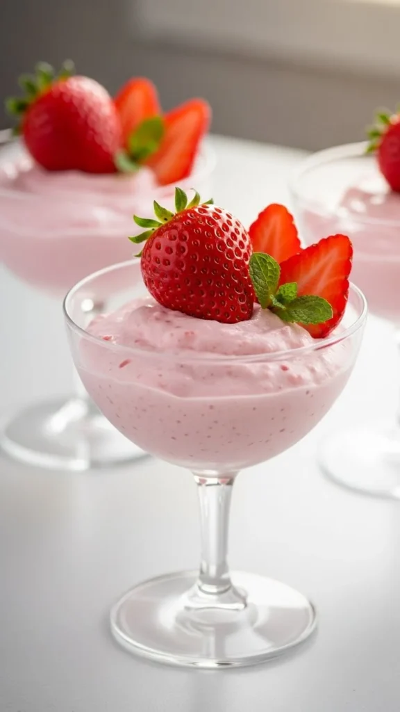 Serve chilled for clean slices. Top with fresh strawberry slices for color. A dollop of whipped cream adds softness. Lightly drizzle strawberry sauce if desired. Store cold until ready to serve.