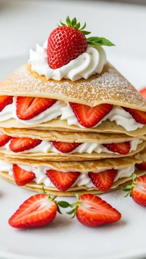 These crepes feel light and romantic. The filling is fresh and creamy. Great for brunch or dessert. Simple but special.