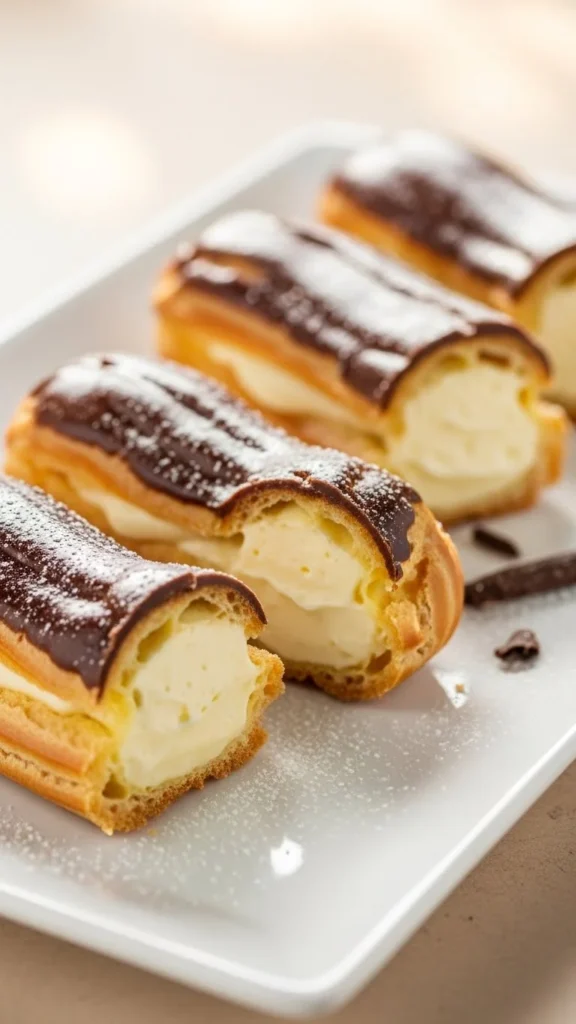 Eclairs feel classic and indulgent. The pastry, cream, and glaze work beautifully together. A bakery-style treat at home. Perfect for Valentine’s Day.