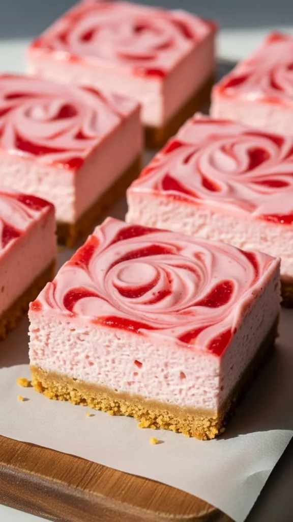 These cheesecake bars combine creamy filling with a buttery crust and fresh strawberry flavor. They’re easy to slice and perfect for sharing, making them great for a Valentine’s dessert table. The balance of tangy and sweet keeps every bite satisfying. They also chill well, which makes prep ahead simple.
