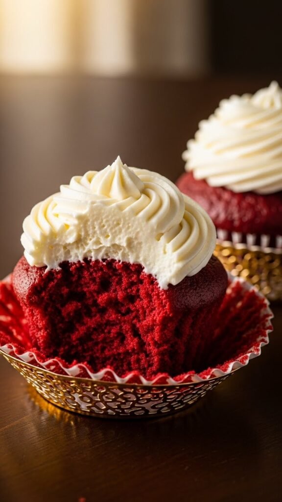 Red velvet cupcakes bring classic Valentine’s color with a soft cocoa flavor. The cream cheese frosting adds a gentle tang that balances the sweetness. They’re festive, familiar, and always a crowd favorite. These cupcakes feel celebratory without being complicated.