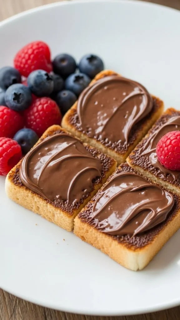 These toast bites are crunchy and creamy. Chocolate hazelnut spread melts slightly. Easy to assemble. Great last-minute snack. Familiar and comforting. Perfect for sharing.
