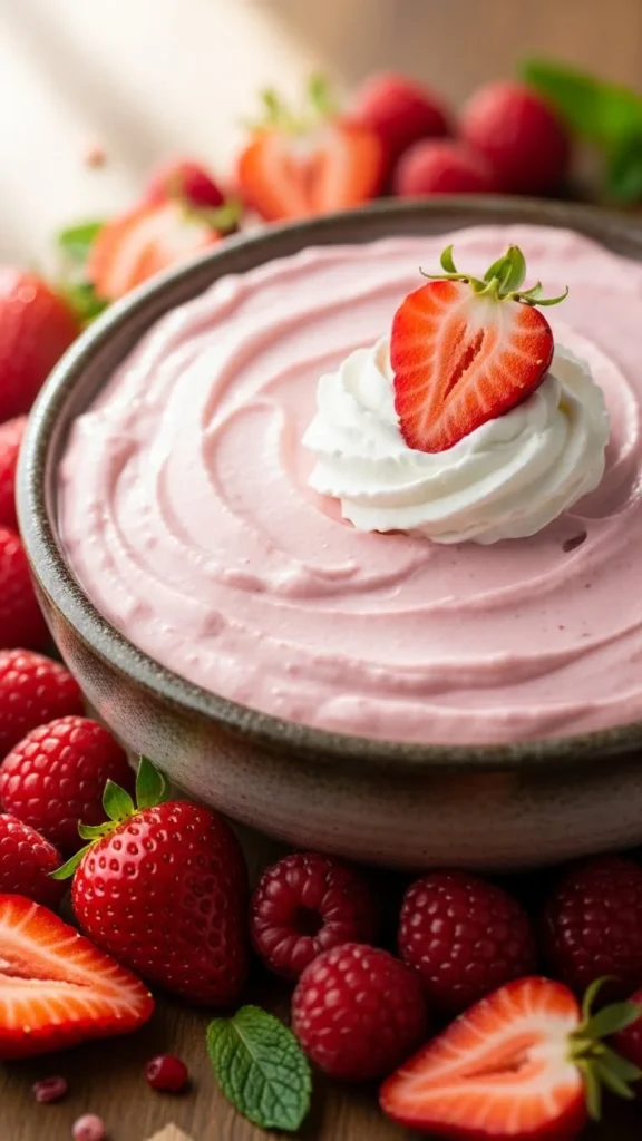 This dip is smooth, creamy, and lightly sweet. Strawberry flavor feels festive. Perfect with graham crackers. Easy to mix. Great shared snack. No baking required.