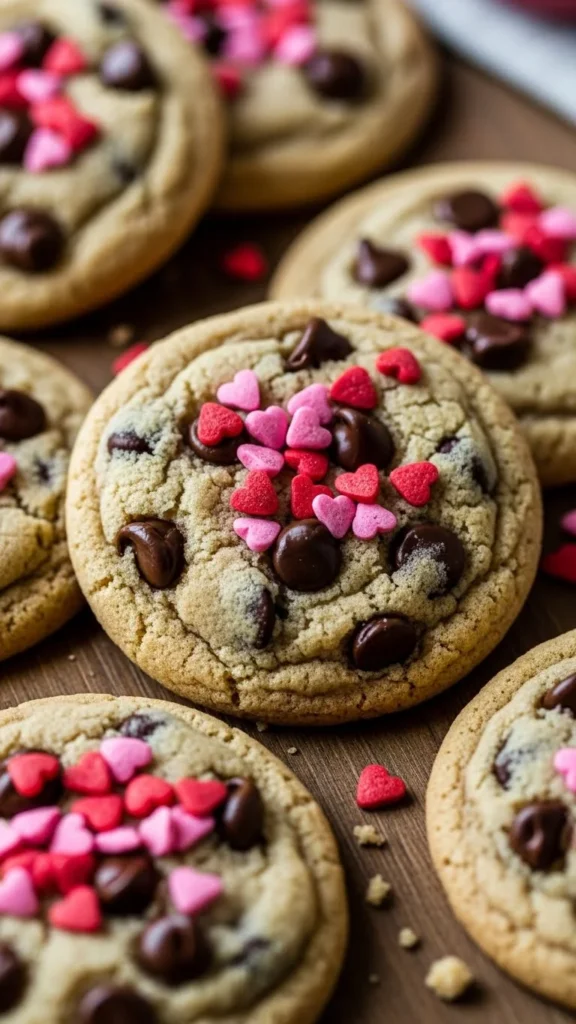 These cookies feel familiar and comforting. Chocolate chips melt nicely. Heart sprinkles add charm. Easy to bake. Always popular.