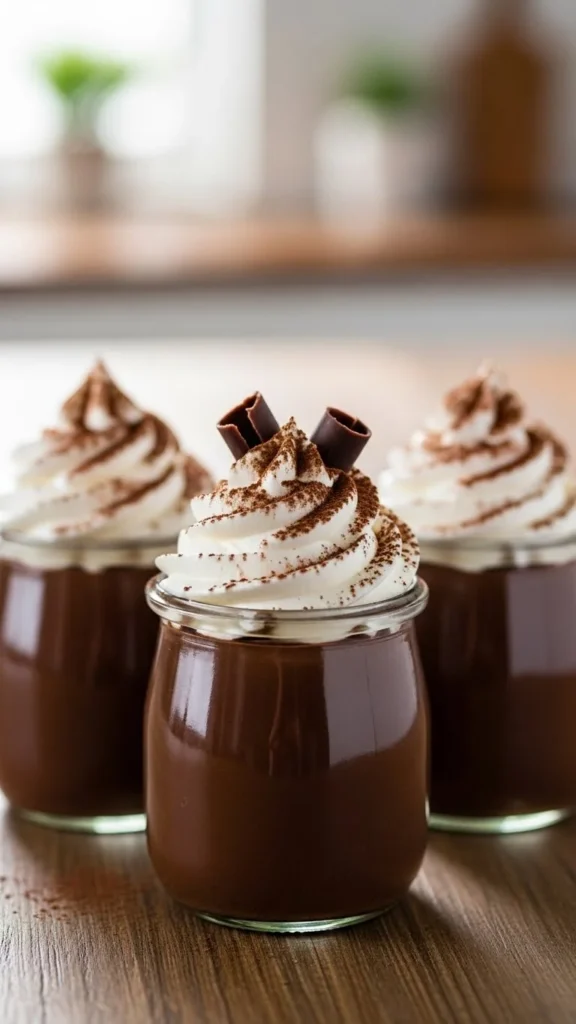 Top with whipped cream. Add chocolate shavings. Serve chilled. Smooth and rich. Simple favorite.