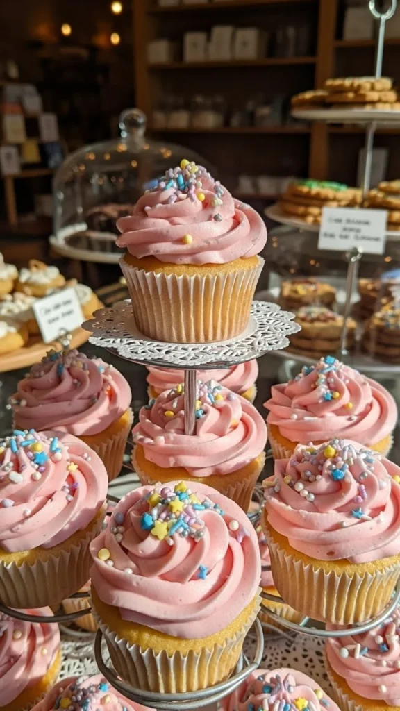 These cupcakes feel cheerful and soft with a gentle vanilla flavor. The pink frosting adds charm. Light crumb makes them easy to enjoy. Perfect for classroom parties. Simple decoration works beautifully.