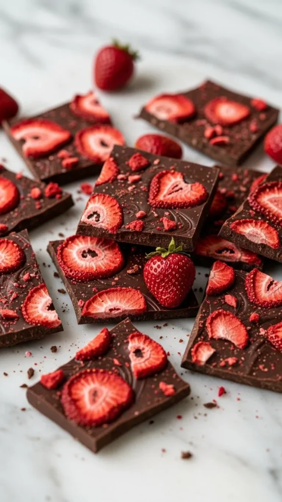 This bark feels rich yet simple. Chocolate pairs perfectly with fruity sweetness. No oven required. Easy to customize. Great for gifting and sharing.
