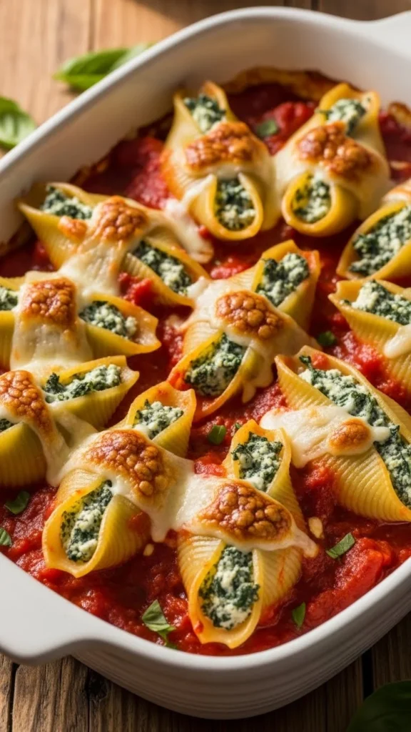 Serve hot with basil. Pair with salad. Let rest 5 minutes. Serve family-style. Comforting and filling.