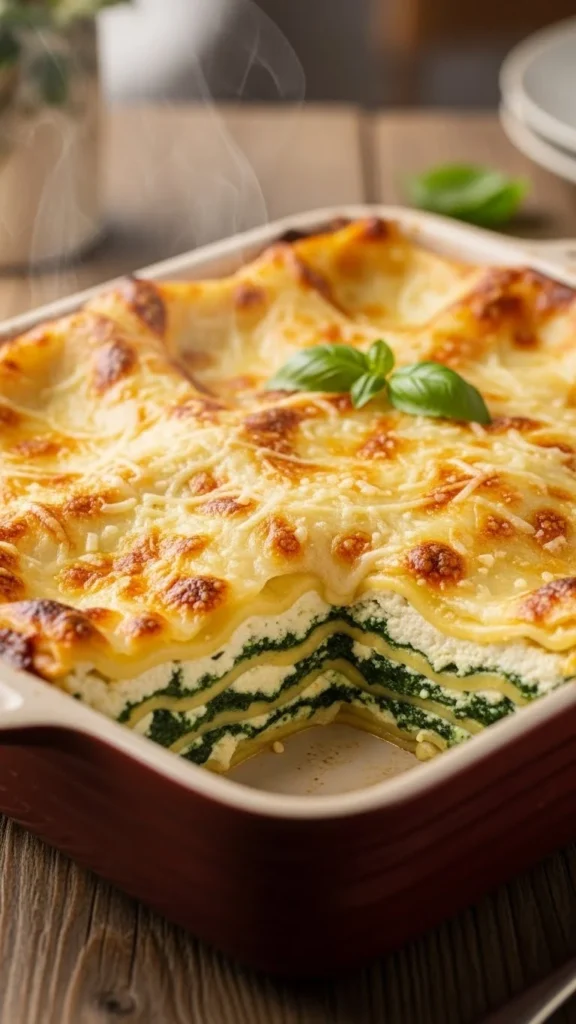 This lasagna feels rich and comforting. Spinach adds freshness. Creamy layers melt together beautifully. Great for sharing. Perfect for a cozy evening. A vegetarian classic.