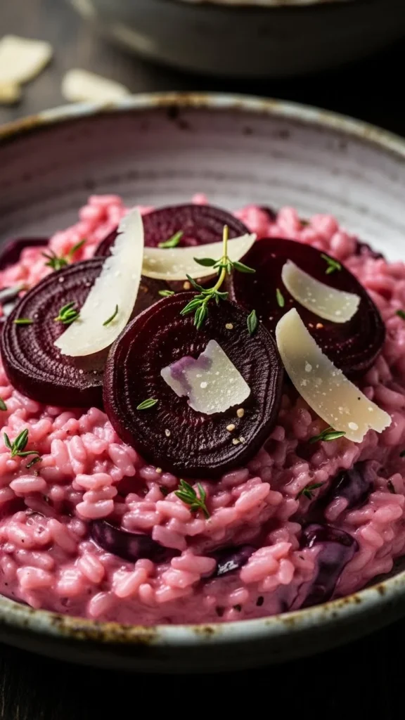 Serve warm in shallow bowls for a romantic look. Garnish with roasted beet slices and extra parmesan. A drizzle of olive oil adds shine. Pair with a simple green salad. Light candles and keep portions modest for a relaxed pace. Fresh thyme on top adds aroma.