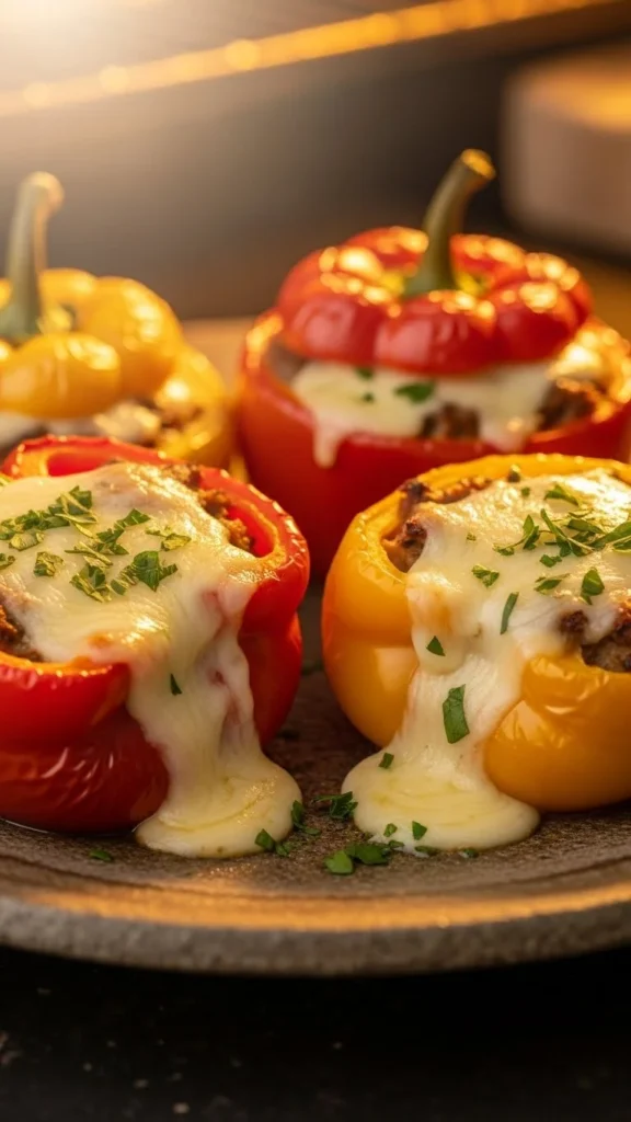These peppers feel hearty and colorful. Rice and cheese fill them nicely. Baking softens everything. Great main dish. Balanced and comforting. Easy to prepare.