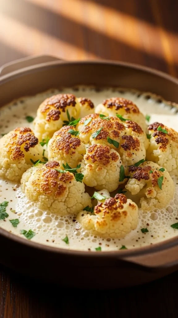 This dish feels rich and comforting. Cauliflower soaks up the sauce well. Baking adds warmth. Great vegetarian comfort food. Perfect for sharing. Creamy and filling.