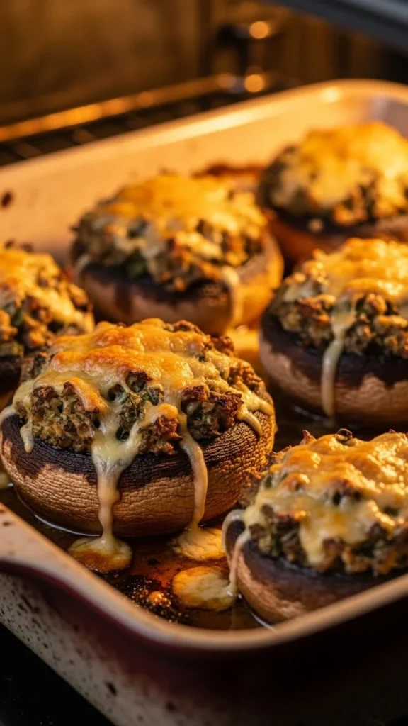 These stuffed mushrooms feel hearty and satisfying without being heavy. The umami from mushrooms pairs beautifully with creamy Gruyère. Baked until golden, they come out juicy and rich. They work as a main or a shared plate. The flavors feel deep and comforting. A great choice for mushroom lovers.